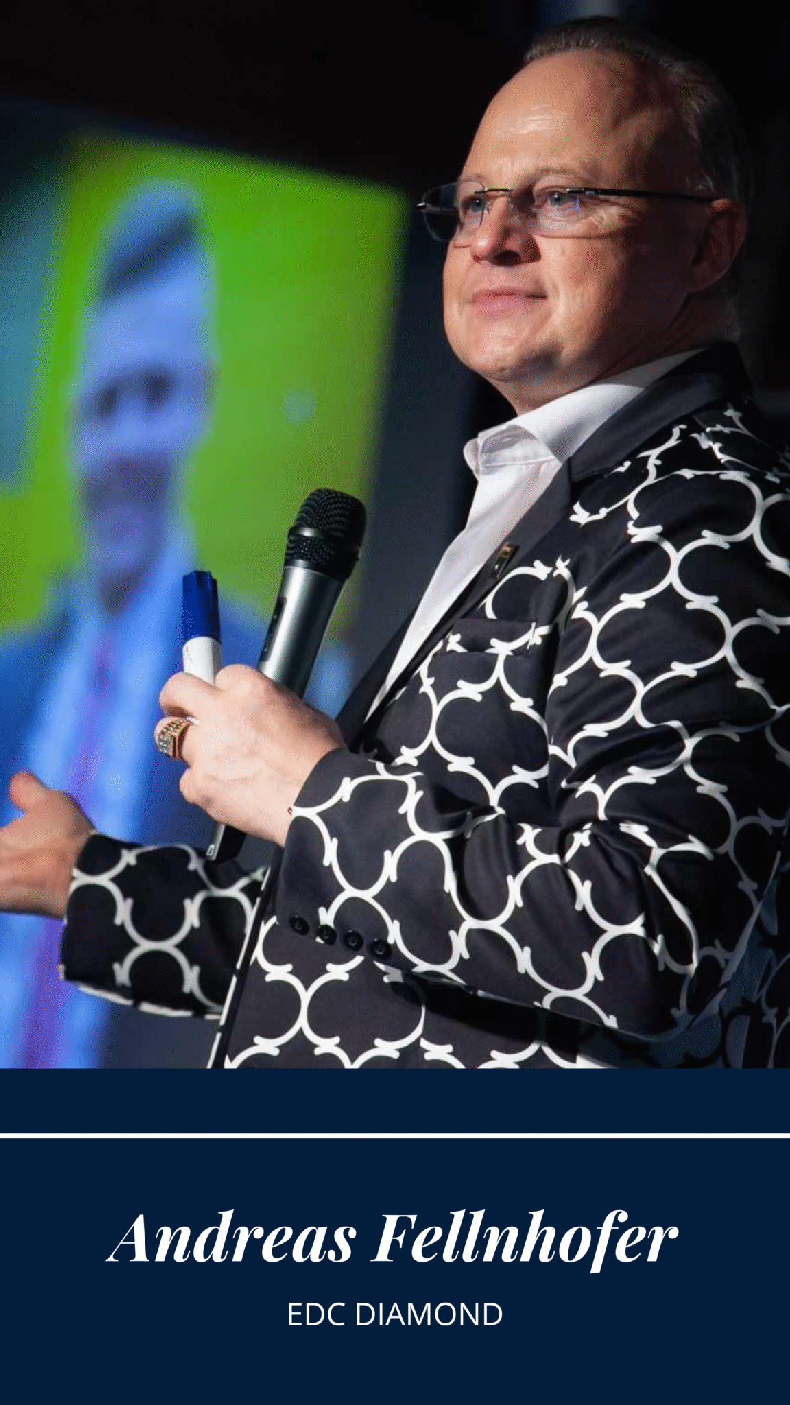 Andreas Fellnhofer to jeden z najbardziej wpływowych przedsiębiorców i mentorów w Europie, od lat zajmujący się wspieraniem liderów i rozwijaniem nowoczesnych modeli biznesowych. Jego doświadczenie obejmuje zarówno budowanie międzynarodowych struktur sprzedażowych, jak i współpracę z setkami przedsiębiorców, którym pomógł osiągnąć niezależność finansową i zawodową.